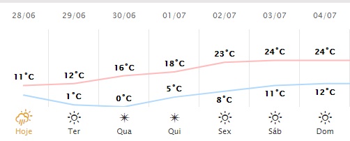 Ainda segundo o Simepar, pode gear no município na quarta-feira (30), quando a mínima prevista é 0 grau.